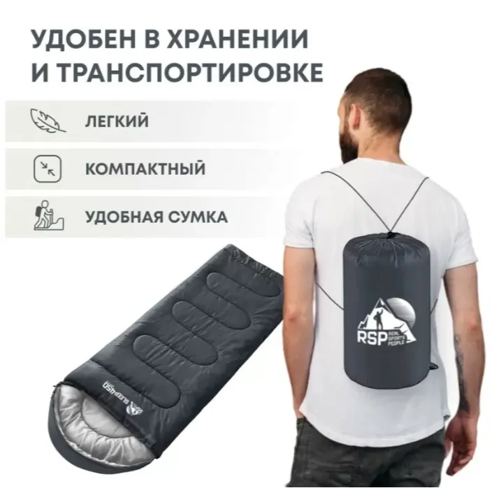 Внешняя ткань — Polyester Rip Stop 210T 68D с водоотталкивающей пропиткой: прочная, износостойкая, но мягкая, защищает от влаги, например от конденсата в палатке. Подкладка — дышащий Polycotton T/R 88X64 с добавлением хлопка: легкая, приятная на ощупь, с высокой паропроницаемостью, эффективно отводит влагу от тела. Утеплитель Hollow Fiber TPH собственной разработки содержит волокна с микроскопическими порами, которые создают дополнительные воздушные камеры — это обеспечивает высокую теплоизоляцию при небольшом весе. Упругие волокна быстро расправляются после распаковки, придавая спальнику объем и мягкость.Бренд: RSP