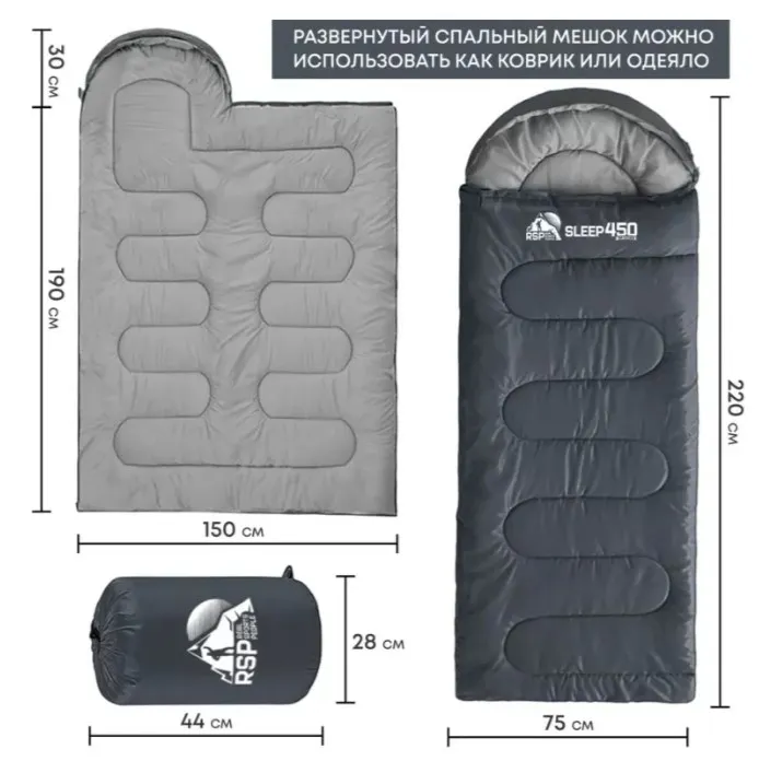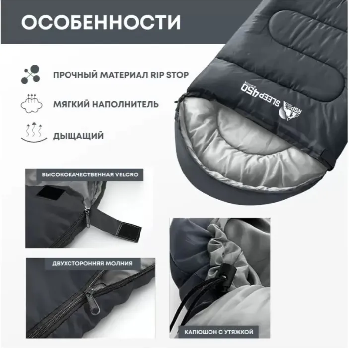 Спальный мешок RSP Sleep 450 L RipStop 2024 (серый, 22075см, молния слева)