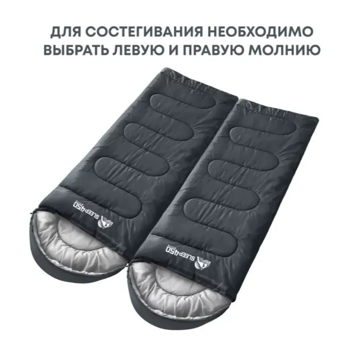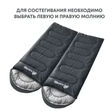 Два спальника с разным направлением молнии можно состегнуть между собой, получив один большой шириной 150 см — в таком варианте комфортно разместятся двое взрослых или двое с ребенком.