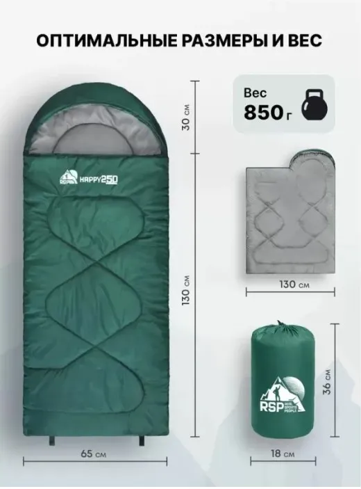 Спальный мешок детский RSP Happy 250 R (зелёный, 16065см, молния справа)